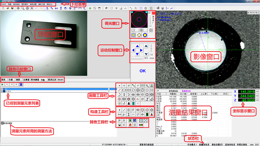 ③采用相同的座標(biāo)系統(tǒng),使用測(cè)頭的三維測(cè)量可與影像二維混合使用或使用影像的二維平面與三維立體測(cè)量完美結(jié)合。