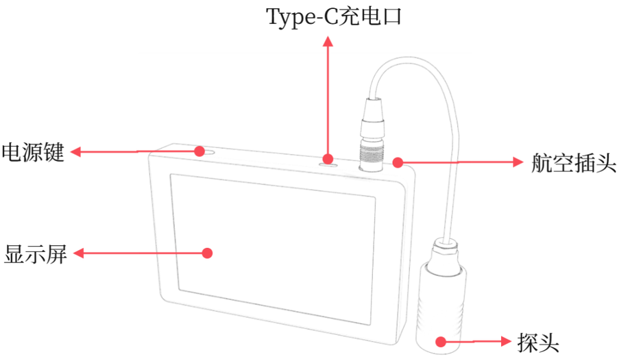 測量范圍 13-5500um (環(huán)氧樹脂涂層),300-14800um(45#鋼) 分辨率 1μm 測量精度 ≤±(3%H+3μm) H為標(biāo)準(zhǔn)值 聲速范圍 1000~9999m/s 最小測量區(qū)域 Φ6mm 顯示屏 800 * 480點(diǎn)陣IPS彩屏 單位 μm/mil 系統(tǒng)語言 簡體中文、英文 主機(jī)尺寸 141.7*91.1*22.6mm 探頭尺寸 Φ26*42.1mm 重量 475g 工作溫度范圍 0~40℃,0~85%RH(無凝露) 存儲溫度范圍 -10~50℃,0~85%RH(無凝露) 供電方式 可充電鋰電池3.7V@4000mAh 充電接口 USB(Type-C) 供電電壓 DC5V 工作電流 447mA 工作功耗 1475mW - 儀器操作