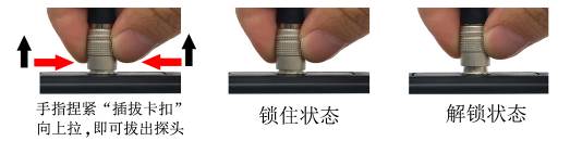 探頭的航空插頭拔出,航空插頭具有彈簧限位,不可暴力旋轉(zhuǎn)拉扯等操作,需如下圖方式操作拔出。
