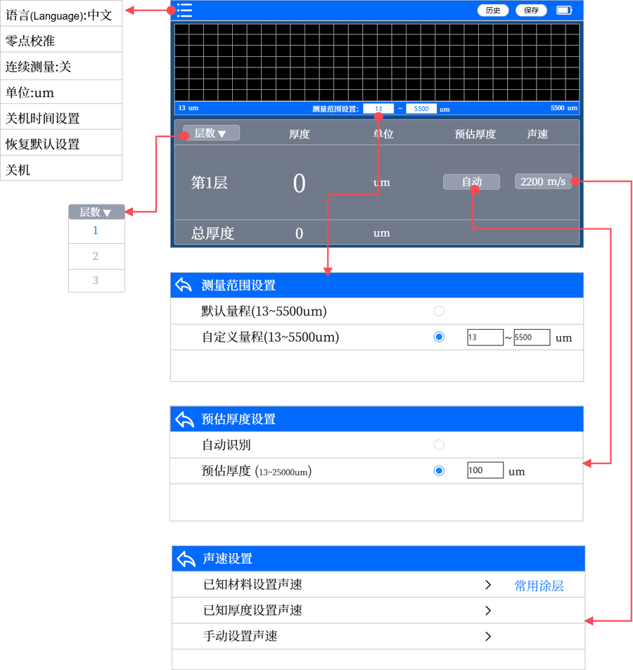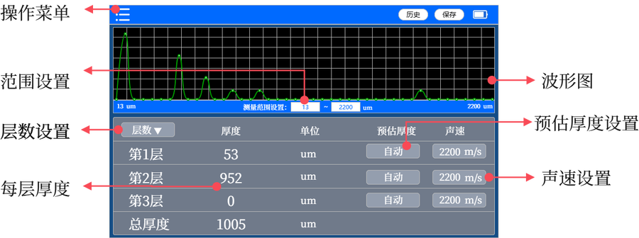 - 聲速設(shè)置:準(zhǔn)確設(shè)置每層材料的聲速,精準(zhǔn)測量每層厚度。